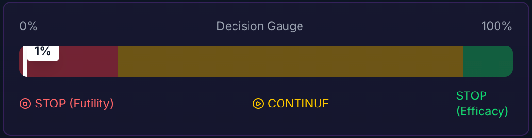 Ethical Dimension: In clinical trials, continuing a trial with <10% BPP is arguably unethical. You are exposing patients to the risks of an experimental drug with almost zero probability that their participation will contribute to scientific knowledge.