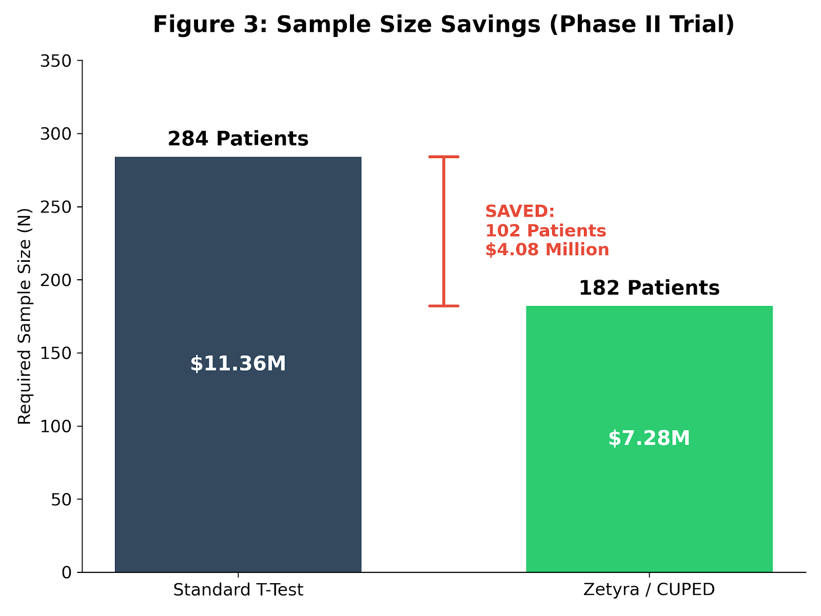 At roughly $40,000 per patient—a typical Phase II burden—that is an $11.36 million trial.